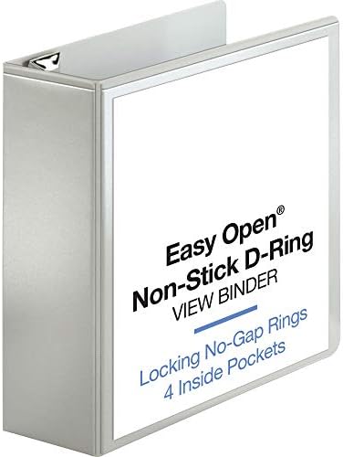 Locking D-Ring View Binder features no-pinch rings that open, close and lock with one touch. D-ring design holds more sheets than standard round-ring binders. Locking steel rings are mounted to the back instead of the spine so pages lie flat. 4" ring capacity holds approximately 775 sheets. Clear, nonglare overlay holds custom title sheets. Acid-free polypropylene construction prevents contents from sticking to the binder cover. Four horizontal pockets are stacked inside front and back covers to maximize storage space on the covers. Each pocket holds 30 sheets. Binder also features exposed rivets and a sturdy chipboard core.