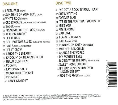 Esta es la primera vez que lo mejor de una carrera de uno de los artistas más respetados de la música se ha reunido en un solo álbum. Este álbum doble al precio de un álbum sencillo presenta clásicos como Layla, Tears in Heaven, Wonderful Tonight, I Shot the Sheriff y Cocaine. Se relaciona con su autobiografía lanzada la misma semana.