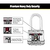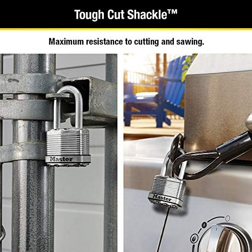 - WEATHERPROOF PADLOCK: Dual armor construction includes steel and zinc cover over laminated steel lock body for performance even in the harshest outdoor environments