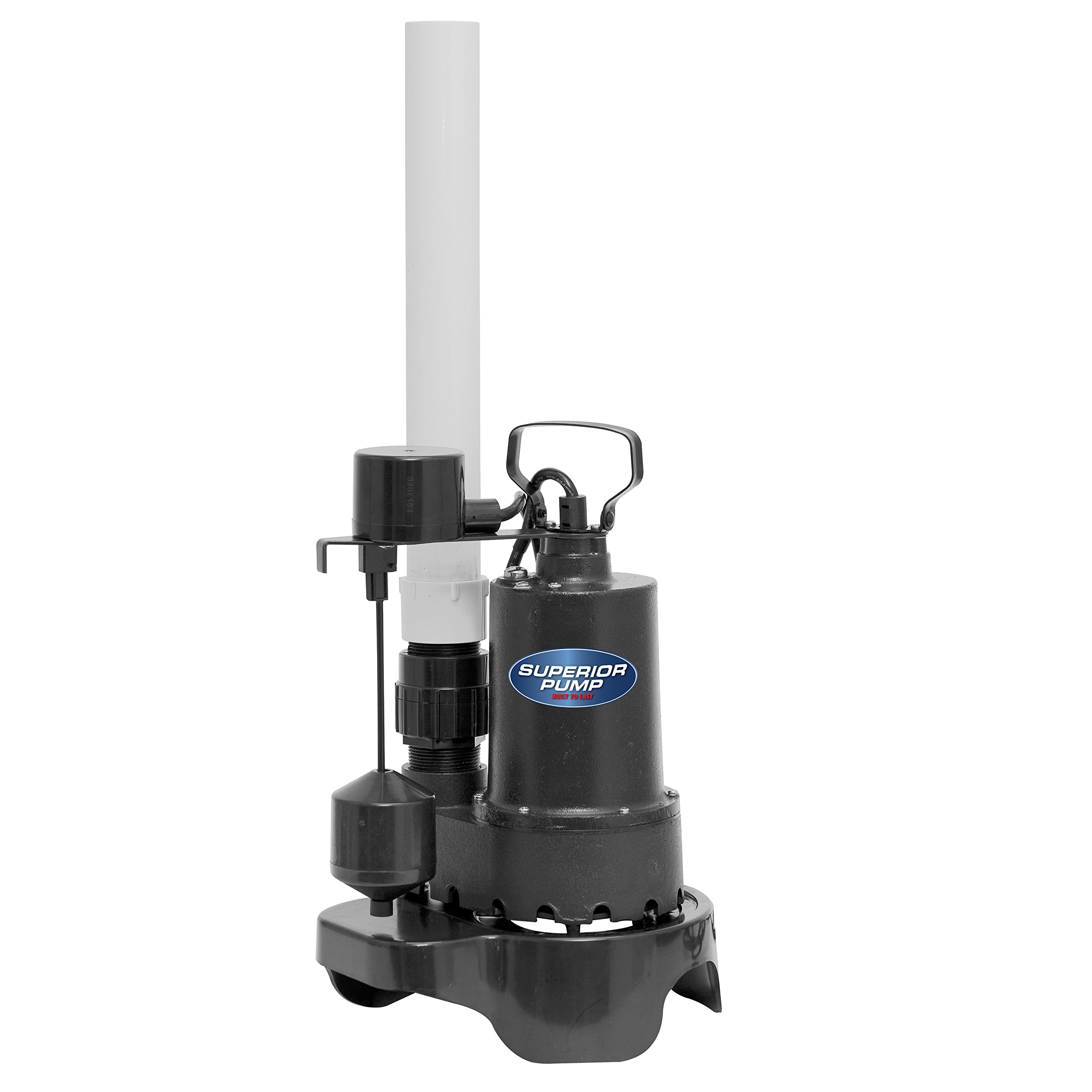 Superior Pump builds pumps that are truly Built to Last and are 100 percent factory tested. Superior Pump uses quality components including solid copper motor windings, heavy duty stainless steel jacketed shaft seals, double o-ring seals on motor plate, and electronically controlled split capacitors. Superior Pump model 91250, 1/4 HP thermoplastic submersible utility pump with 10 foot power cord and ¾-inch garden hose adapter, will move water up to 1800 gallons per hour. Equipped with suction screen to filter out large debris and handles up to 1/8-inch solids with ease. Base of the pump is designed to fit the hub of a standard 6-inch floor drain. This pump is UL/CUL listed and CSA certified and backed by a 1 year warranty. Will pump up tp 25 ft. of vertical height.