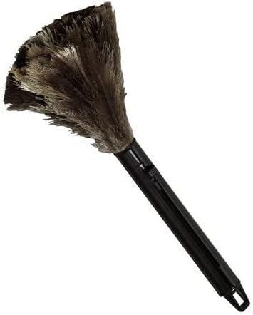 - Retractable ostrich feather duster. Retract into handle with the slide of a button