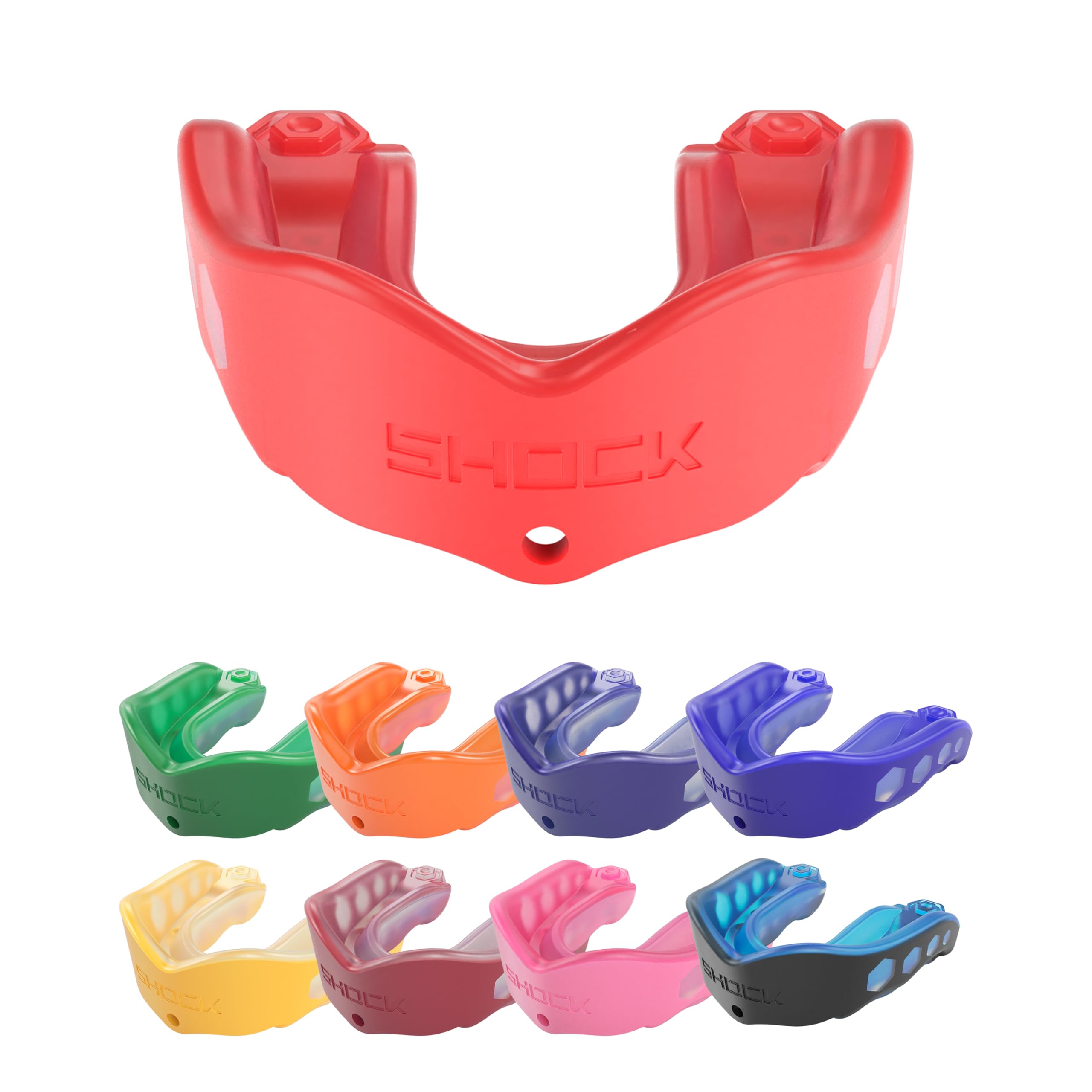 La construcción multicapa con un marco interno que absorbe los golpes ofrece protección y ajuste que superan a los protectores bucales convencionales. El parachoques amortiguador desvía el impacto lejos de los dientes delanteros. Correa para casco de liberación rápida. Funciona con aparatos ortopédicos. El tamaño de adulto es para mayores de 11 años. 12 por paquete.