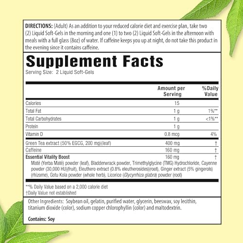 Green Tea Fat Burner®* increases your calorie burning ability in fast-acting Liquid Soft-Gels.* This product has been formulated to deliver a highly concentrated form of Green Tea Extract combined with caffeine.