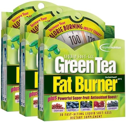 Applied Nutrition Green Tea Fat Burner - 30 Liquid Soft-Gels, Pack of 3 - Increases Calorie Burning & Supplies Powerful Antioxidants - 45 Total Servings