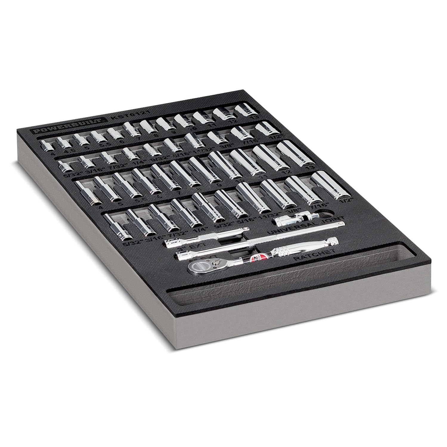 For removing and installing front axle spindle nuts. Includes: 2-3/4-in x 4 lug outer 2-5/8-in x 6 lug outer 2-3/8-in x 4 lug outer 2-1/2-in x 4 lug inner 2-1/4-in x 4 lug inner. 1/2-in square drive for use with breaker bar/torque wrench. Storage case complete with laminated instruction sheets with photos. Meets or exceeds ANSI standards. Any specialty tool will help make an automotive repair or maintenance task easier, but Powerbuilt products take the concept of 'help' a big step further. Every package comes with professionally written usage instructions that take you step by step through proper tool usage. And photographs of the tool in use accompany the instructions. All developed by an automotive professional who writes and edits automotive service manuals. Millions of Powerbuilt products are used every day around the globe, on the job, at home and in the garage. Powerbuilt tools are built with the performance, features, fit and finish to satisfy the most demanding users. No matter which Powerbuilt tool you select, you will enjoy the added confidence of knowing that all Powerbuilt tools and equipment meet or exceed applicable standards set by the US Government and American National Standards Institute (ANSI). Ready to get serious? Get Powerbuilt tools!