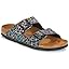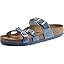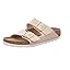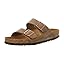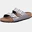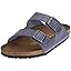 Estilo clásico de dos correas con partes superiores de cuero, gamuza, nubuck o Birko Flor, plantilla de corcho y látex, correas ajustables y suela EVA absorbente de impactos.