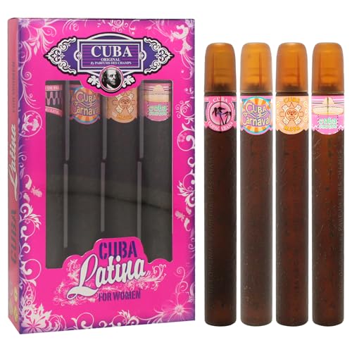 Colección Champs Cuba Latino de Champs para Mujeres Set de Regalo (Eau De Parfum Spray 1.17-Onzas/35 Ml de Carnaval, Cactus, Maya y Copacabana)