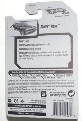 Hot Wheels Chevy Nova (1968) 2009-136 más rápido que nunca NEGRO a escala 1:64
