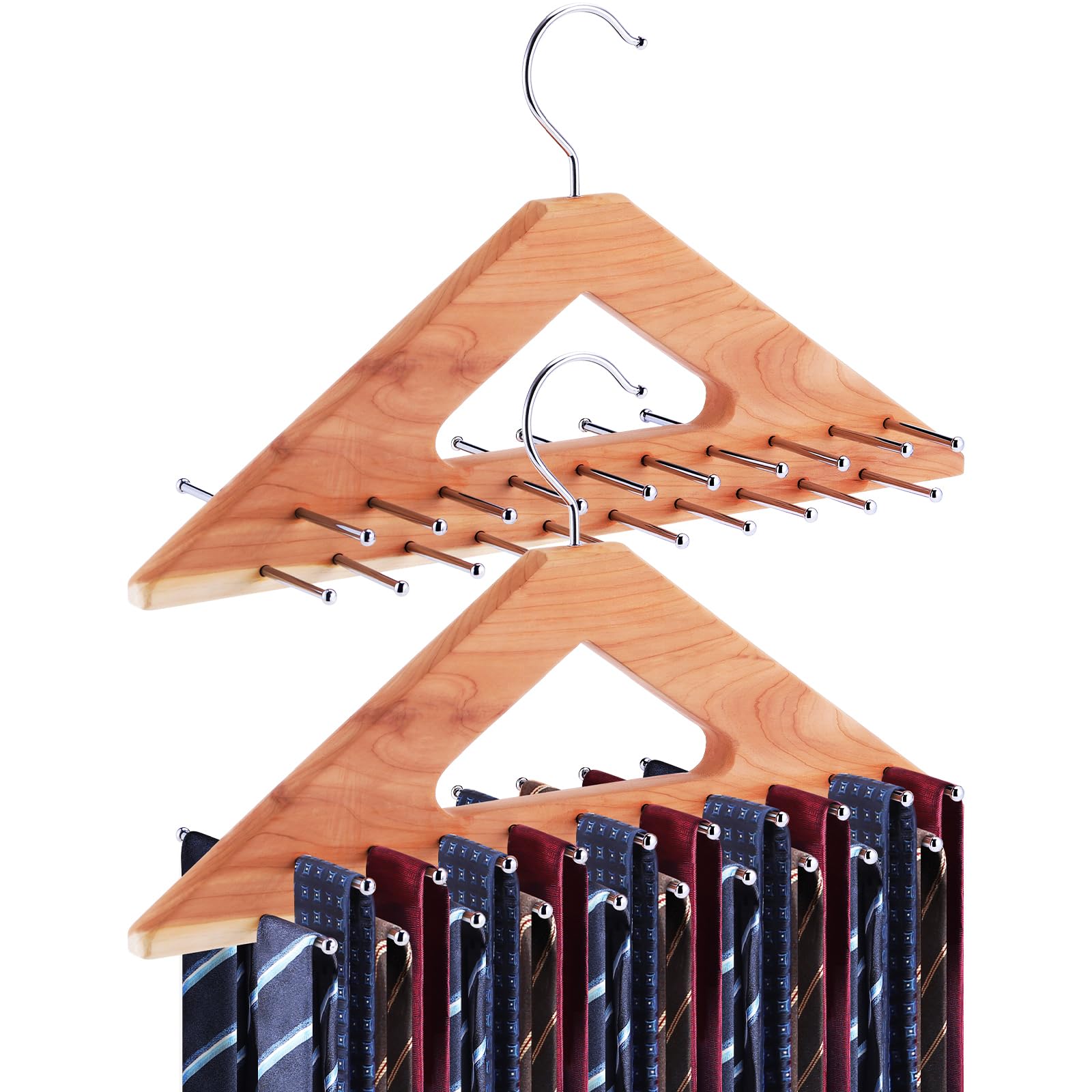 Conveniently hangs 42 ties in the space of a jacket with Woodlore's cedar tie organizer.