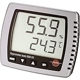 - The 608-H1 thermal hygrometer is ideally suited for continuous measurement of the indoor climate. You can therefore use the measuring instrument in locations such as offices, warehouses, laboratories, garden centers, or living areas, to determine temperature, humidity, and dew point. The hanging and standing brackets enable you to either hang the thermal hygrometer on the wall, or to place it on a table or shelf. We recommend you use the 608-H1 thermal hygrometer if you are not interested in measurement data documentation and management, but just want to be able to view the current readings at any time. The thermal hygrometer shows you temperature, humidity, and dew point on its clear display. The current readings are also easily legible from a distance on the large display. In addition, you can display max. and min. values. The thermal hygrometer has an NTC temperature probe, which performs very precise temperature measurements, and a capacitive humidity sensor, which is characterized by its long term stability. This makes the 608-H1 thermal hygrometer a reliable and durable partner for recording the indoor climate. The thermal hygrometer's battery life is approx. one year. As soon as the battery is coming towards the end of its life, you are notified about this in good time on the display.