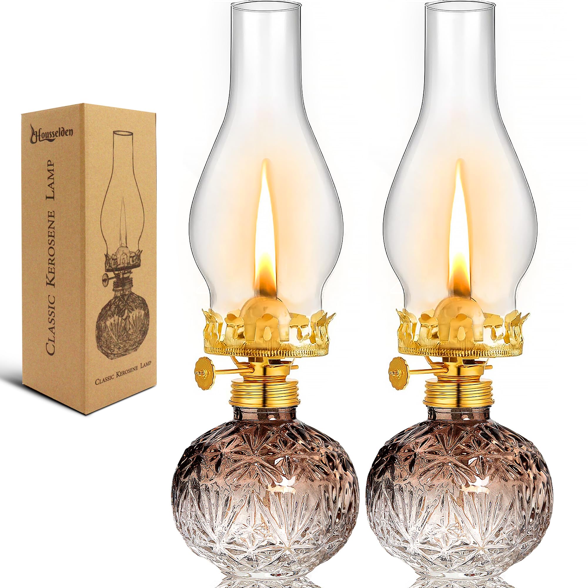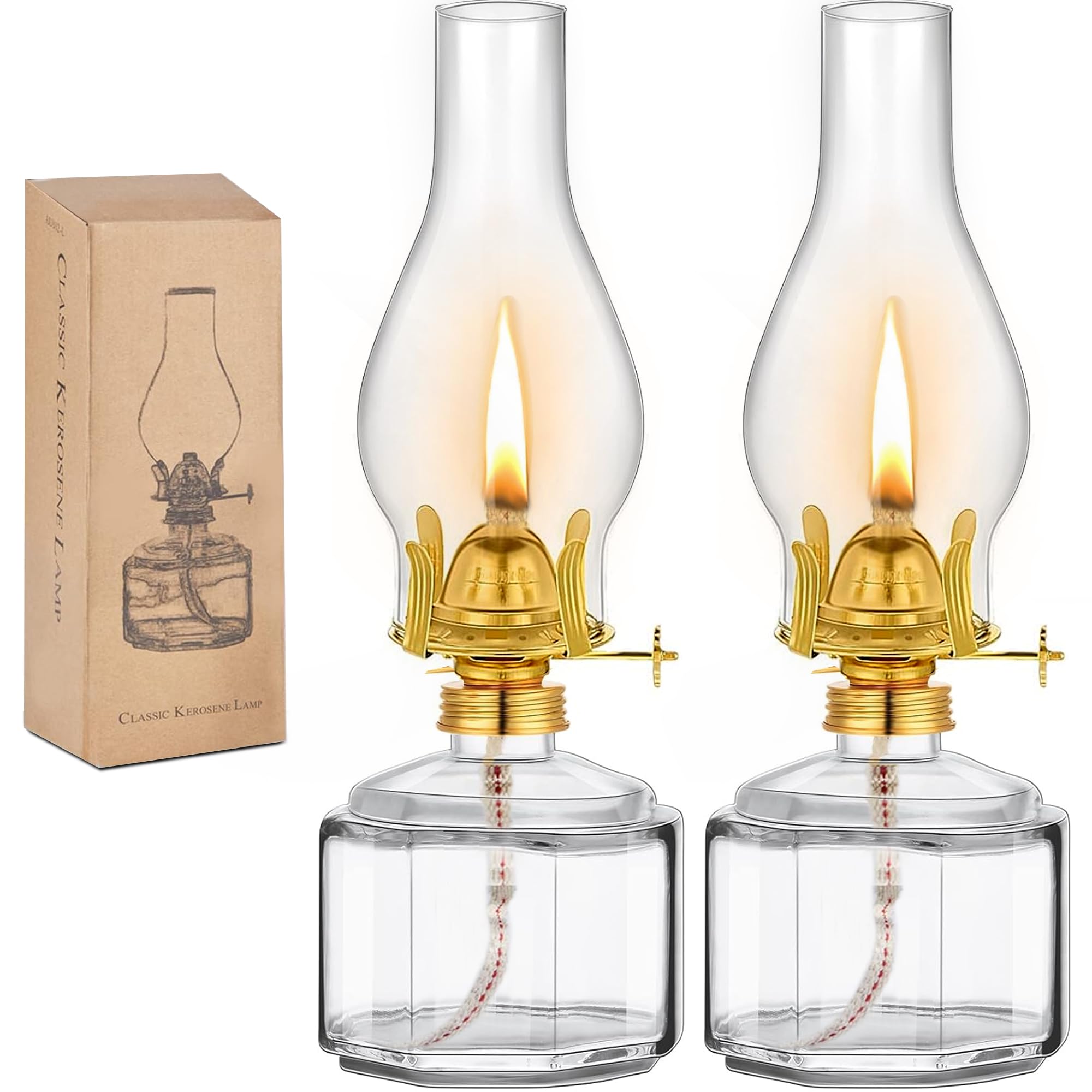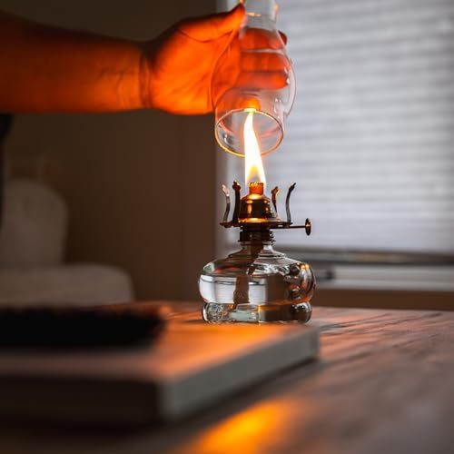 Lamplight 12-inch Chamber Oil Lamp Clear Glass, Hurricane or Power Outage, White, 110