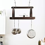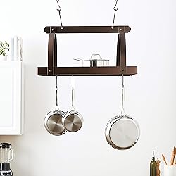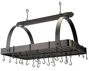 Constructed of durable steel with an Oiled Bronze Finish Holds up to 120 pounds of your cookware and other household items Removable hooks allows you to adjust and arrange the pots Measures at 30" x 20.5" x 15.75" Comes with matching grid and 24 hooks