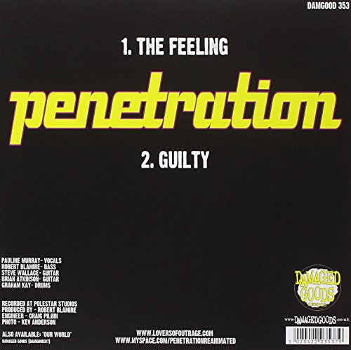 Limited edition seven inch yellow vinyl pressing of this 2010 single from the veteran Punk/Post-Punk band. Both 'The Feeling' and 'Guilty' are already live favorites and were recorded back in 2008 but have only just been mixed and mastered. Penetration reformed back in 2001 after a 22 year break and have done odd gigs and festivals since then.