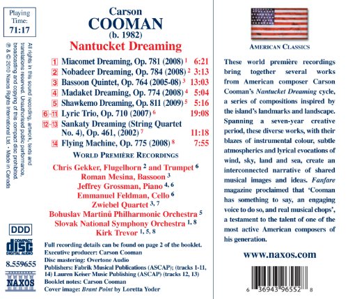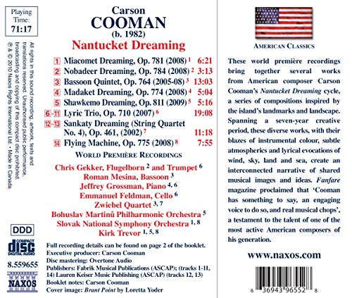 These world premiere recordings bring together several works from American composer Carson Cooman' Nantucket Dreaming cycle, a series of compositions inspired by the island' landmarks and landscape.