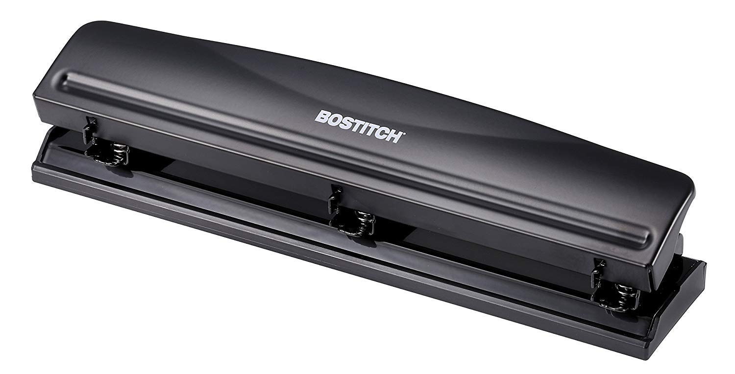 Bostitch Office inPRESS 12 Reduced Effort Three-Hole Punch, Silver/Black (2101)