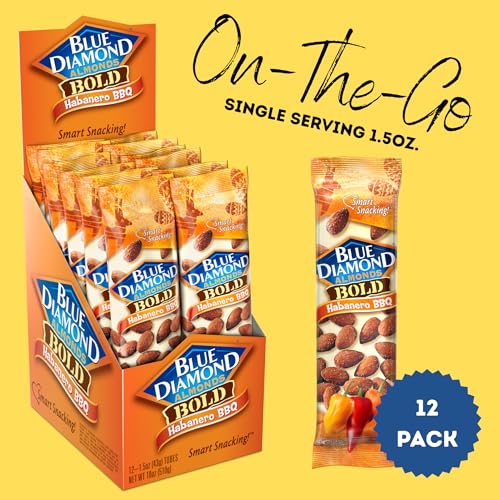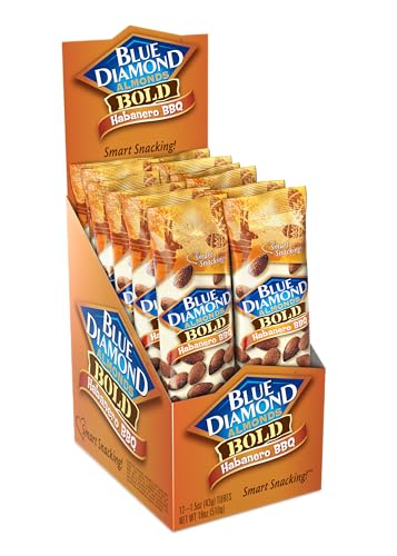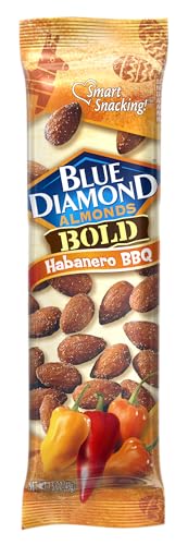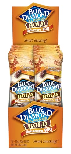Blue Diamond Almonds, BOLD Flavored Habanero BBQ On-The-Go Snack Nuts Perfect for Road Trips, Lunches, Kids and Adults, 1.5 Single Serving Tubes, 12 Pack