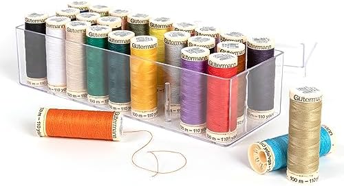 - Compact and clear, the Gutermann 26 Spool Thread Box is perfect for storing a total of 26 spools of thread. Its see-through body makes it easy to find the color of your choice.