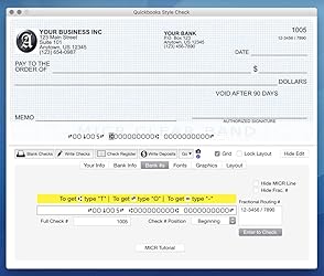 - Create ready to use checks on your Mac or Windows computer for personal or business use. Print completed checks with payee, amount, etc in 1 pass, or print blank checks ready to hand-filled or completed with your finance software (if it is so configured). Prints addresses, routing and account numbers. Memorize payee, amount, category and memo - to print completed checks with just a few clicks. Import any QIF, CSV or Tab file. Tracks transactions in a check register. Print reports, Reconcile bank statement. Export to QIF, CSV or Tab files. Print on pre-printed checks in some cases (must match one of our templates, be in sheet form 8.5x11, business checks perfed at 3.5", wallet perfed at 2.87" - Contact us for more info). Requirements: High quality printer; Bank compatible blank check paper; MICR ink or toner* FOR U.S. BANKS ONLY. For questions, feel free to contact us. Note: the program does not interface with other software, so completing with other finance software is a 2-step process. This is NOT a payroll program. Ships on a CD. Check paper not included. *Official bank recommendation. Many banks have optical readers that don't need magnetic ink, though some still have the older-style magnetic readers. Many don't use MICR toner with no problem. Your experience may vary.