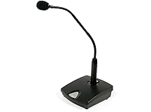 Weighted microphone base with female XLR connector Programmable switch for "Push to Talk" or "Push to Mute" or operation DIP switches allow for various Mic Power, State and Button settings Euroblock connector plus 10-meter cable terminated in standard male XLR connector included LED indicator illuminates when the microphone is active