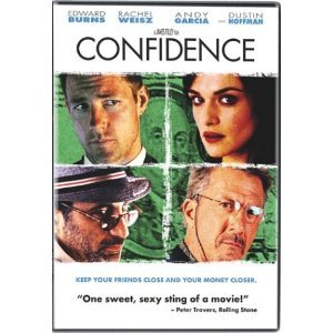 Ed Burns gives the best performance of his career in James Foley's fast-moving CONFIDENCE. Foley, who directed David Mamet's GLENGARRY GLEN ROSS, has learned much from his mentor, making a who's-conning-whom film worthy of the master of the genre. Burns plays Jake Vig, the leader of a small group of con artists who unknowingly steals money from a sleazy but powerful underworld lord known as King. In order to get his dough back, King forces Vig and his gang to pull off a nearly impossible con that could get nearly everyone involved killed. Meanwhile, Vig is being watched closely by a stubbly federal agent who is following the money. Foley has put together a terrific cast, including Paul Giamatti and Rachel Weisz as part of Vig's crew, Andy Garcia as the fed, Dustin Hoffman as King, and Luis Guzman and Donal Logue as two cops on the take. As in Mamet's films, the audience will have to keep guessing whose side the characters are on right up until the final shot, never quite knowing who's conning whom