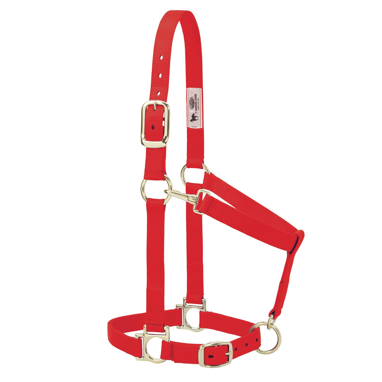 Weaver Leather Track Leather Halter Features: Oil dipped bridle leather halters are doubled and triple stitched so they keep their shape Smoothed and darkened edges Rolled and formed throat latch and double crown buckle adjustments Solid brass hardware Available in 1" or 3/4" Size: Average Horse 800-1100lbs