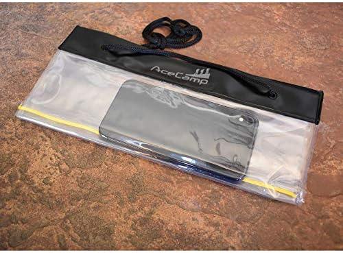 AceCamp Waterproof Map Case This is a lightweight, but durable map holder that can be used for camping, hunting, hiking, backpacking, fishing, emergency, survival and basically all outdoor activities. Qualities - Material: PVC plastic. - Map case is 12.5” tall and 11” wide. - Two rings with a drawstring make it easy to use. Where to Use - Hiking, backpacking, camping, trekking, biking, survival, outdoors, white-water rafting, canoeing, kayaking, water, pond, lake, rain, survival, emergency What is Included - 1 Watertight Map Case