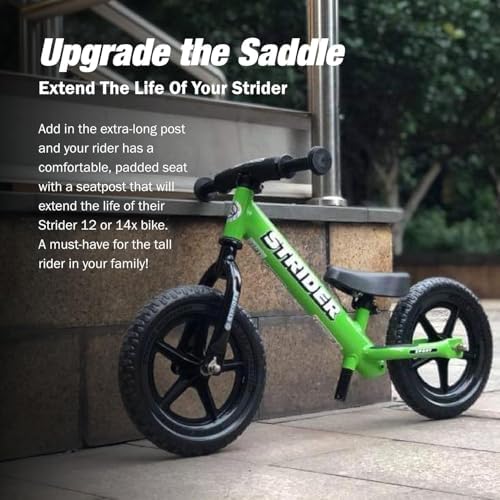 - PERFORMANCE SEAT WITH XL POST - Ready to upgrade the saddle Add in this extra-long post, and your rider has a comfortable, padded seat with a seatpost that will extend the life of their Strider 12 or 14x bike