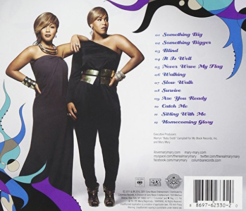 SOMETHING BIG is the sixth album from groundbreaking duo Mary Mary. With powerful voices that soar, harmonies that chime and empowering lyrics, the songs on SOMETHING BIG are instantly memorable. From the lively lead single Walking, to the unforgettable anthem Never Wave My Flag and title song Something Big, Mary Mary is on course to drive their indisputable reputation smack into the mainstream. Billboard Magazine s recent review of Walking stated The song s synthesizer-accented, percolating rhythms are immediately arresting, and the mix is seamlessly strung together by the engaging vocal interplay... Walking is the pair s latest track to leave the listener with a bounce in his or her step. As songwriters, Mary Mary's honesty and passion are unmatched by most contemporary storytellers. Mary Mary's lyrics underscore an unwavering faith and belief in God to conquer the challenges that life sends our way. It is that faith that has connected with fans around the globe and secured an even wider fan base that continues to grow each day. "In life, we all need to believe in our inner strength to endure the unexpected, to face challenges which confront us, and ultimately survive; we are living in difficult times, but there are infinite reasons to be hopeful," say Erica and Tina. During their career, Erica and Tina have sold upwards of five million albums. In a remarkable and still ongoing story, Mary Mary's 2008 release, The Sound topped multiple charts and broke several records. A string of awards, including 2 Grammy Awards, an American Music Award, a BET Award, a Soul Train Award, and an NAACP Image Award, among others were racked up for the album. Mary Mary have made it their life's mission to connect with people all over the world. It s not just about musical achievements, awards, charts and sales, say Mary Mary. That s not our guiding light. It s about helping people...we re committed to our message and purpose.