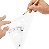 Precise Degree Tracing - Fine tune angles from 0 to 90 degrees with an adjustable angle ruler, delivering precise control for crisp drafting lines, accurate geometry, and professional grade results in classroom and studio projects Dual Graduations for Inner and Outer Angles - Inner arc graduations show the measurement on the inner scale while the outer arc reveals the complementary angle, speeding layout accuracy and streamlining workflows through drafting tools Clear Visibility - Transparent ruler design lets you see the underlying work clearly, ensuring precise alignment, quick setup, and flawless lines for every draft in classrooms and studios, minimizing parallax errors and speeding setup Circular Openings for Circles and Arcs - With circular openings of 1/4-inch, 1/2-inch, 3/4-inch, and 1-inch, this drafting triangle supports quick circle and arc construction, speeding layout tasks for precise geometry and classroom projects Versatile Tool for Students and Professionals - Perfect for your math supplies, this adjustable triangle enables quick layouts, precise sketches, scalable workflows, and reliable performance across architecture, engineering, and art projects