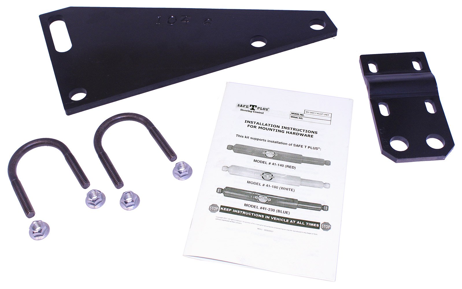- Please refer to the “Safe-T-Plus Fit Guide” document to determine the correct steering stabilizer and mounting kit for your specific vehicle. Steering stabilizer unit not included.