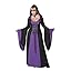 A robe with a dark passion for purple. The deluxe hooded robe features robe with flared sleeves, attached hood, and lace up ties. Necklace and shoes not included.