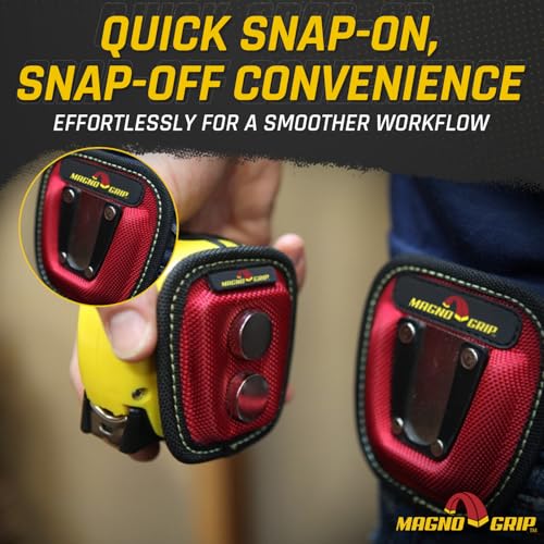 MagnoGrip 002-290 Quick Snap Magnetic Tape Measure Holder - Heavy-Duty, Durable, Hands-Free Magnetic Holder for Construction, Carpentry, & Tool Belts - Ideal for Professionals & DIY Enthusiasts, Red