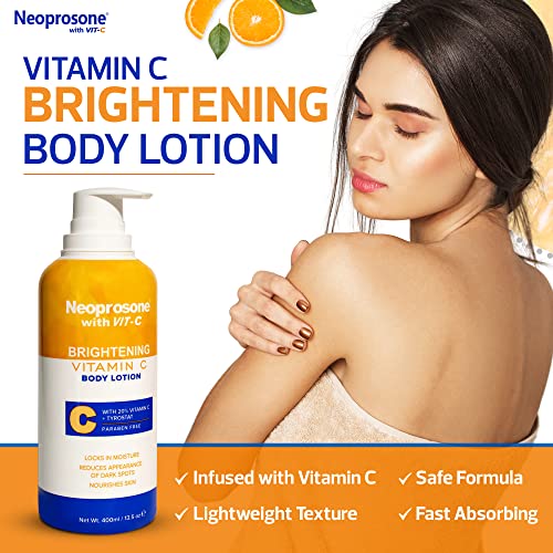 Neoprosone Brightening Body Lotion - 13.5 Fl Oz / 400ml - Formulated to Fade Dark Spots on Elbows, Knees, Neck, Body, and Intimate Parts, with Tyrostat, Shea Butter, Vitamin C, Vitamin E