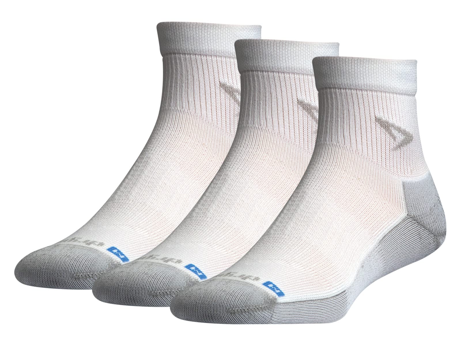 This Drymax® Sport Hyper Thin™ Running v4 Mini Crew 3-Pair Pack of socks will help you tackle any challenge head-on.No-show socks that sit just out of sight and help keep your feet feeling dry and comfy.Sold as three-pair pack.Dual layer Drymax® system uses a system of inner and outer layers to pull moisture away from the skin to help keep your feet dry no matter the challenge.Hyper Thin™ construction is engineered to provide maximum performance with minimal bulk.Anti-slip heel helps keep your sock in place.Y-heel stitch fits around your heel for a better fit.Vented arch band across the out-step helps hold the sock in place.Breathable mesh stripes across the out-step provides exceptional air flow.Seamless toe closure helps reduce chafing.73% Drymax®, 11% nylon, 11% polyester, 5% elastane.Machine wash, tumble dry.Made in the USA.