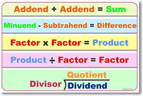 Basic Math Operations - Classroom Math Poster 12 inches x 18 inches - Perfect for Classrooms - Printed on High Quality Paper PosterEnvy EXCLUSIVE! Fits the National Educational Curriculum Framework and Common Core Standards for Math! 100% Satisfaction Guaranteed!