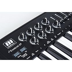 - The i2-Control 37 black edition is the big brother of the i2-Control 25 black. With additional keys, in total 37, and 9 faders it gives you more functionality. Full USB powered and class compliant, works the i2-Control 37 with each Windows and Mac OSX, which supports class compliant devices. With an optional power adaptor the i2-Control 37 black works perfect with each MIDI device. 37 High Quality dynamic keys Pitch Bend and Modulation wheel 8 Controller / V-Pots 9 Fader/ Slider Data Entry Slider 3-segment blue LED Display Function-keys for Octave +/- Easy controller-programming USB MIDI MIDI Out Input Jack for sustain-pedal Colour: black Without DC connector and power switch – for standalone use please use a normal USB power adaptor USB buspowered, works with Apples iPad with camera connection kit without additional power adaptor Dimensions: 59 cm x 24 cm x 8,5 cm incl.: USB-cable Class compliant: Works driverless with Mac OS/X, Apple iOS 4.2, Windows XP SP2, Windows Vista, Windows 7 and Windows 8 Inclusive: free Miditech software bundle (download versions): Toontrack EZ Drummer lite, Magix Samplitude Silver, Makemusic Finale Notepad, Ik Multimedias Amplitube CS and Imagelines Poizone Synthesizer