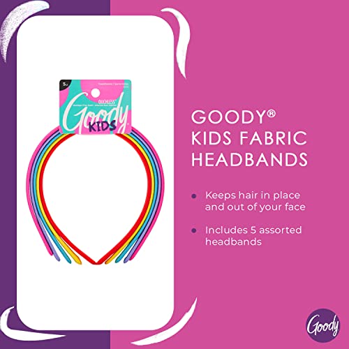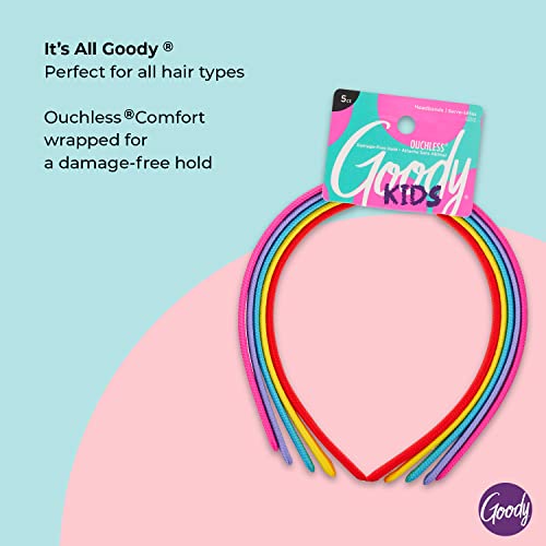 Goody Kids Ouchless Classic Headband , Assorted Colors - For All Hair Types - Beautiful Design for Instant Style - Pain-Free Hair Accessories for Boys, and Girls, 5 Count (Pack of 1)