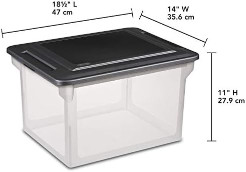 Sterilite File Box, Stackable Storage Bin with Lid, Plastic Container to Organize Taxes, Papers in the Home, Office, Clear Base with Black Lid, 4-Pack