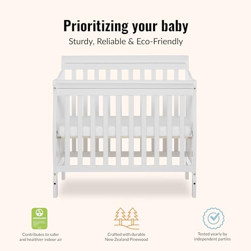 Dream On Me Aden 4-in-1 Convertible Mini Baby Crib in White, GreenGuard Gold & JPMA, Sustainable Pinewood, Non-Toxic Finish, 3 Mattress Heights, Converts to Mini Day & Twin-Size Bed