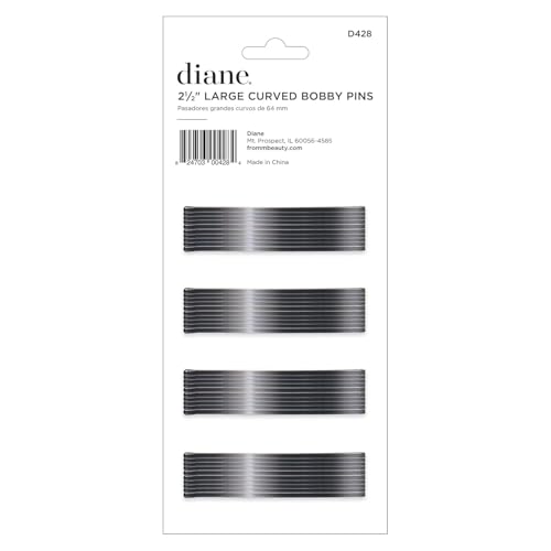Diane 40-count Large Size Curved Bobby Pins are 2.5 inches long. They are made of good quality metal and come in a basic black color. Can be used by adults or kids with curly, straight, or wavy hair for a wide variety of hair styles, including buns, chignons, pony tails, and more. It’s curved design contours to your head shape and make them ideal for wrap styles and to use with rollers. The ball tips at the end prevent from scratching the scalp or damaging hair and the flat design avoids crimping your hair. The bobby pins hold hair firmly in place and won’t easily break. They are best for professional salons or for personal use at home, to perfect any hair style with ease and comfort.