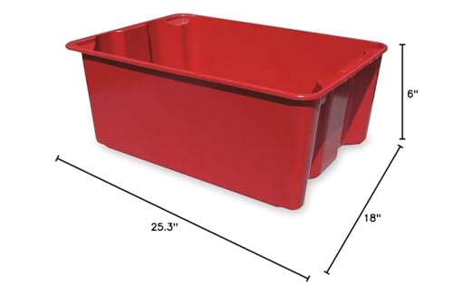 ' Heavy Duty Stack and Nest Container, Outside Length 25-1/4 In., Outside Width 18 In., Outside Height 6 In., Inside Length 21 In., Inside Width 16 In., Inside Height 5-3/4 In., Volume Capacity 1.2 cu. ft., Load Capacity 500 lb., Color Red, Material Fiberglass Reinforced Composite, Finish Smooth, No. of Divider Slots Long 0, No. of Divider Slots Short 0, Use Lid Number Mfg. Model 780618 '