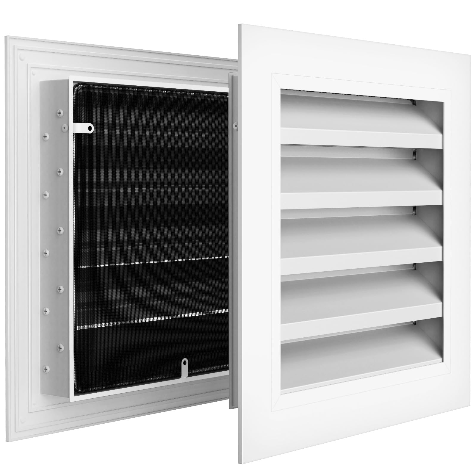 Item: Backdraft Damper / Gable Shutter Mounting Hole Size: Prepunched For Use With: Gable Mounted Power Attic Ventilator Shutter Item: Backdraft Damper / Gable Shutter Shutter Opening Required: 17" x 17"
