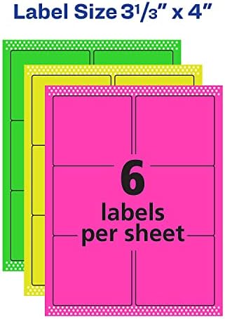 Avery Removable Multipurpose Labels, Assorted Neon, 3 1/3 x 4