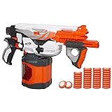 The Pyragon Blaster Can Hold Up To 40 Vortex Discs Slam-Fire Handle Lets You Fire Multiple Discs While You Hold Down The Trigger 40 Bright Orange Vortex Discs Included Vortex Discs Work with Other Vortex Blasters (Sold Separately)