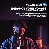 The VE-5 Vocal Performer is a compact and mobile personal effects processor and looper for vocalists Featuring a simple-to-use tabletop design that can be easily attached to a mic stand for performing, the VE-5 is perfect for singers, rappers, beatboxers, webcasters, and anyone that wants to have fun with processing vocal sounds Easy one-touch operation Six types of high-quality vocal effects inherited from the VE-20 – Reverb, Delay, Double/Harmony, Dynamics, Pitch Correct, and Tone/SFX Phrase Looper adds impact to real-time vocal performances, including harmonizing and layered beatboxing