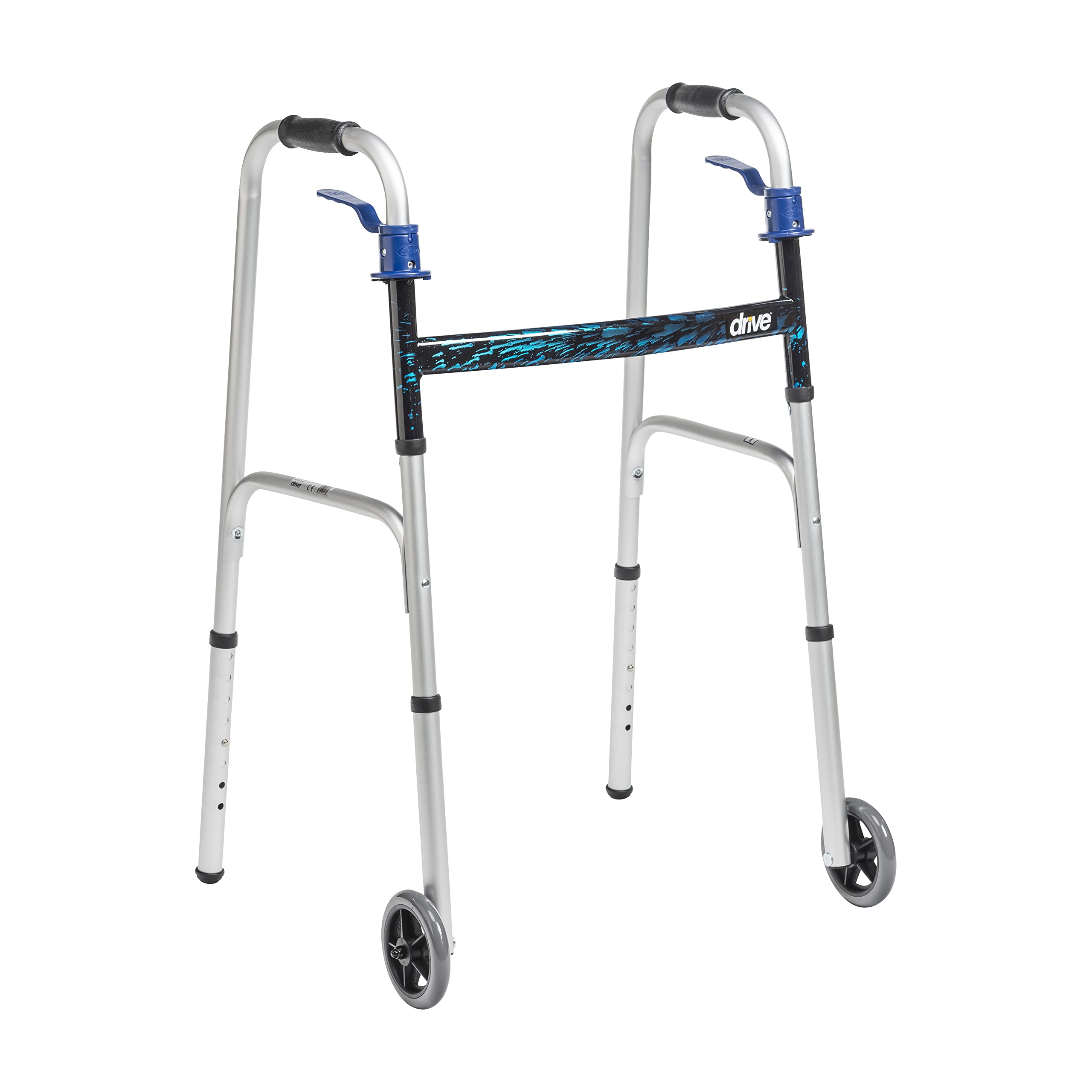 The Nitro foldable rollator walker with seat combines advanced features including large front wheels and an ultra-compact fold with a sophisticated exterior. Great for travel and everyday use—even on rough terrain. Not Your Typical Walker: The Euro-style Nitro rollator is efficiently and elegantly designed with well-placed and practical features including hidden brake cables for safety, curb assist, and an x-frame design that enables you to quickly fold it side-to-side. Adjustable-height hand grips let you customize handles to your desired level and feature an ergonomic design to reduce wrist strain. The folding walker’s sleek, lightweight aluminum frame supports up to 300 pounds and is strong enough to withstand extended daily use. Big Wheels Make a Big Difference: This four-wheeled walker features 10-inch front casters for a smooth roll over grass, gravel, and other difficult terrain. Because both sets of wheels turn, it’s easier to maneuver the walker around furniture and corners quickly and quietly. Compact, Comfortable, and Convenient: The folding rollator walker easily collapses to an ultra-compact size with one hand; simply pull the seat grip up and bring the handles close together. Just 17.5 pounds, it stows in the trunk or back seat with ease. The removable back is height-adjustable, while the luxury seat is made of easy-to-clean nylon. A convenient storage bag secures all your personal belongings during travels and holds up to 20 pounds. What’s Included: Drive Medical Nitro Rollator, Black (Assembled) Storage Bag Owner’s Manual A Brand You Can Trust For more than 20 years, Drive Medical has led the world with innovative healthcare solutions that enhance lives. We offer a full suite of medical products including innovative mobility, bath safety and respiratory products. Backed by a limited lifetime warranty, you can feel good about your purchase.