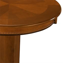 Constructed with hardwood Carved pedestal and apron Claw and ball feet Pairs nicely with our 29" stools Wood veneer tabletop in sunburst design
