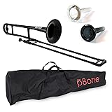 pBone Bb Plastic Trombone - Lightweight pInstruments Design with Ergonomic Grip - Includes Mouthpieces & Carrying Bag - Authentic Bb Sound for Students & Beginners - Durable ABS - Black