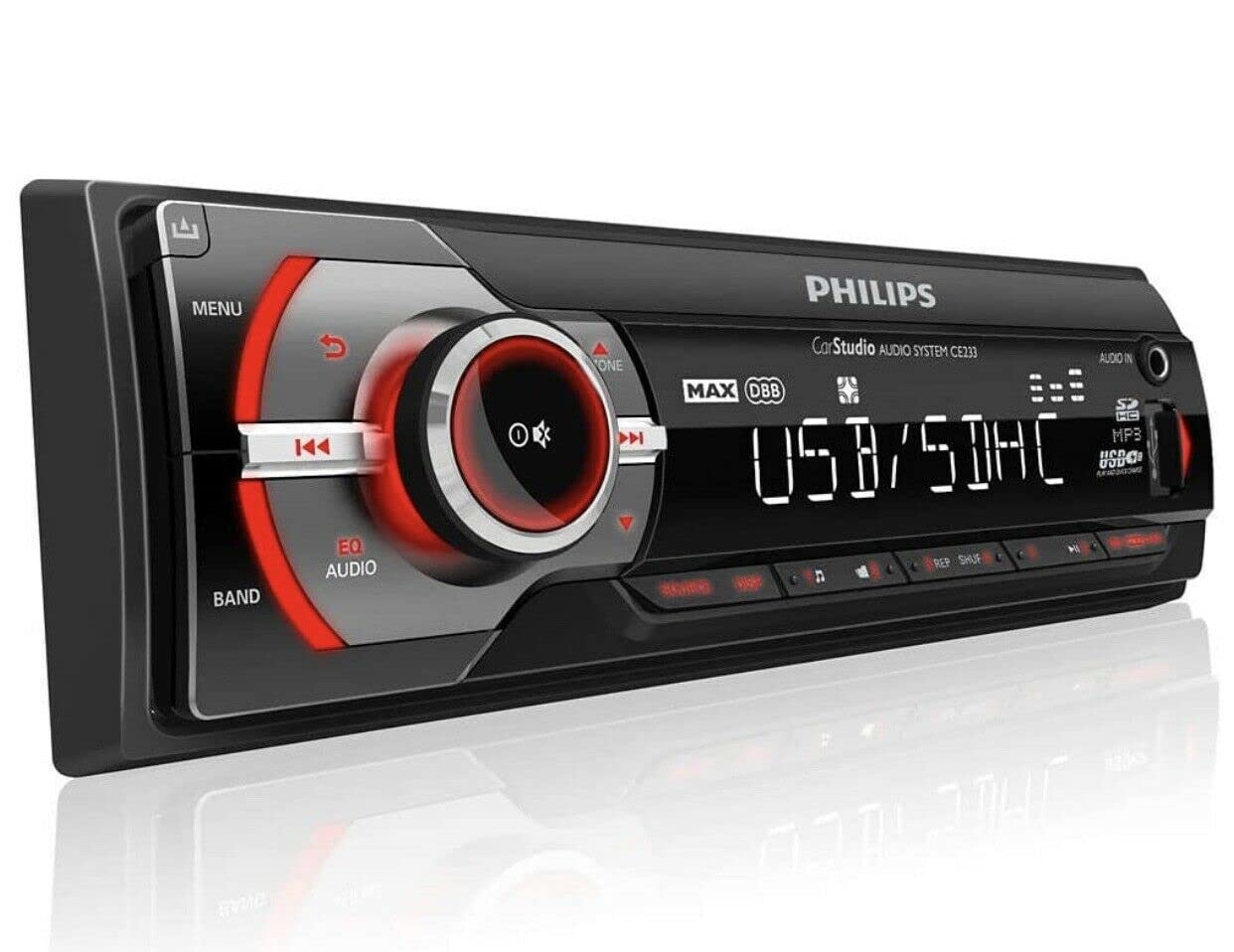 Enhance your drive with the Philips Car Stereo Bluetooth Audio Receiver—a reliable and feature-rich single DIN stereo tailored for modern drivers. Equipped with AM/FM radio, Bluetooth, USB, and AUX inputs, it supports a wide variety of playback options, giving you the freedom to listen your way. The intuitive button-and-knob control system, paired with a high-visibility non-touch screen, ensures safe and seamless operation. Experience bold, detailed sound through built-in 50W x4 amplifiers and adjust your audio with a 2-band equalizer for perfectly tuned output. With built-in and external microphone support, hands-free calling is easy and clear. This stereo brings high-performance audio and user-friendly functionality into any vehicle with a standard single DIN slot.