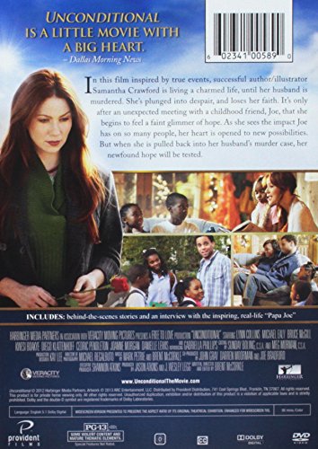 INSPIRED BY A TRUE STORY-- Samantha Crawford is living a storybook life: she s happily married, she lives on a ranch where she keeps her beloved horse, and the stories she s told and illustrated since childhood have become published books. When her husband Billy is killed in a senseless act of violence, Sam loses her faith and her will to live. But a death-defying encounter with two children leads to a reunion with Joe, heroldest friend. Inspired by true events, UNCONDITIONAL stars Michael Ealy (Think Like A Man) and Lynn Collins (John Carter). As Sam watches Papa Joe care for and lovethe kids in his under-resourced neighborhood, she begins to realize that no matter life s circumstances, the love of Godis always reaching out to us.
